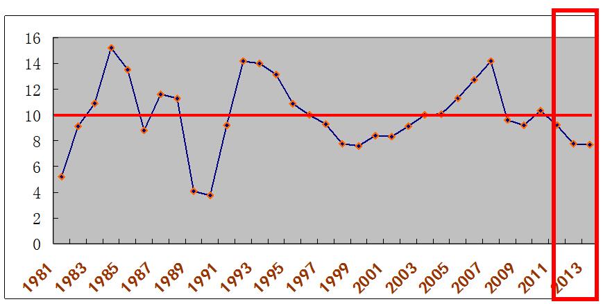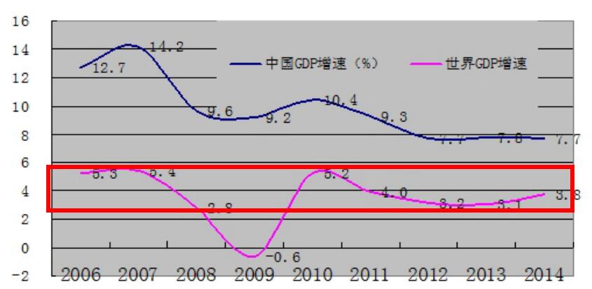 習(xí)近平總書(shū)記提出的“新常態(tài)”重大戰(zhàn)略研判源自,我國(guó)正處在“三期疊加”的特殊階段。我國(guó)經(jīng)濟(jì)增長(zhǎng)速度從2012年開(kāi)始結(jié)束近20年10%的高速增長(zhǎng),轉(zhuǎn)而進(jìn)入增速換檔期。根據(jù)國(guó)家統(tǒng)計(jì)局的數(shù)據(jù)顯示,2012年我國(guó)的經(jīng)濟(jì)增長(zhǎng)率為7.8%;2013年我國(guó)的經(jīng)濟(jì)增長(zhǎng)率為7.7%;2014年我國(guó)的經(jīng)濟(jì)增長(zhǎng)率為7.4%。根據(jù)2015年《政府工作報(bào)告》:2015年預(yù)期我國(guó)國(guó)內(nèi)生產(chǎn)總值增長(zhǎng)7.0%左右。